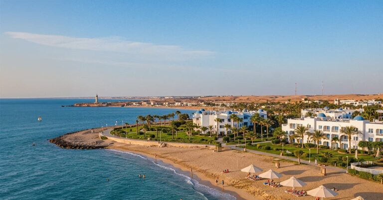 Prabangūs 5★ viešbučiai („Rixos Premium Alamein“, „Al Alamein Hotel“) – modernūs kompleksai, veikiantys ištisus metus.
